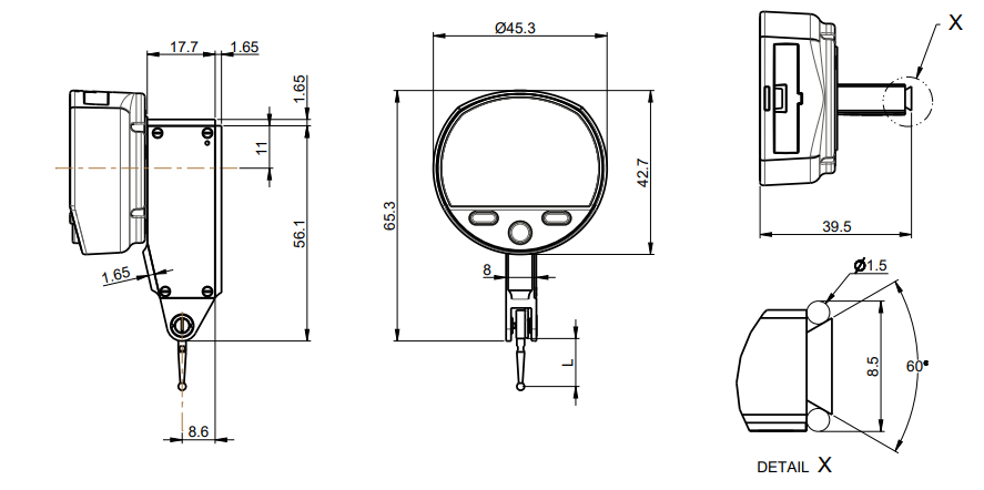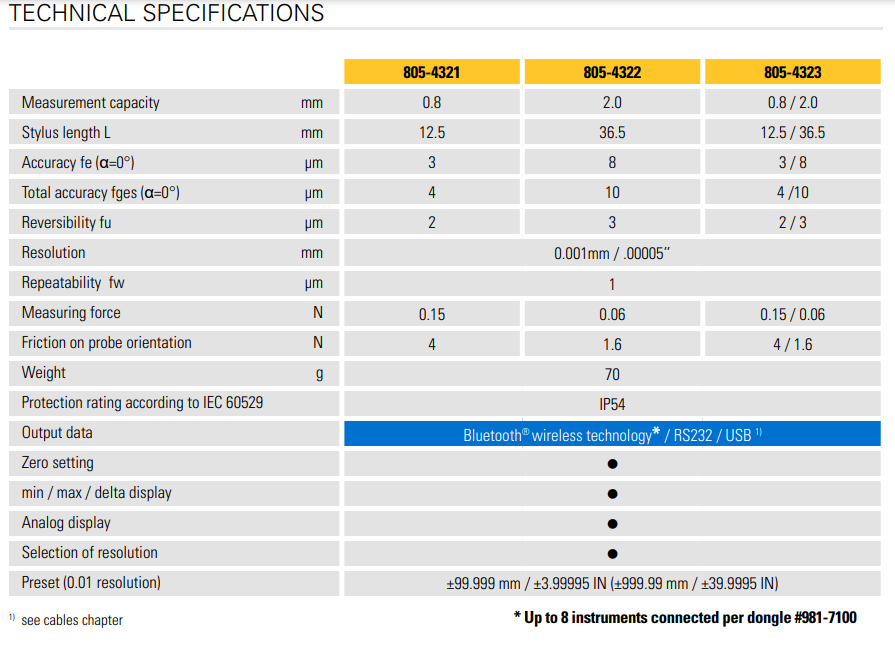 瑞士製電子槓桿表 液晶螢幕顯示,具備0.001mm解析力 內建藍牙,可上機台遠端校正與數據觀察傳輸,連接智慧型手機或PC 新型內部設計,無齒輪彈簧延遲現象,並強化磁性防護 量表測針12mm與36mm兩種長度選擇 另可選擇長/短針二合一型 IP54防護等級 錶面可270°旋轉