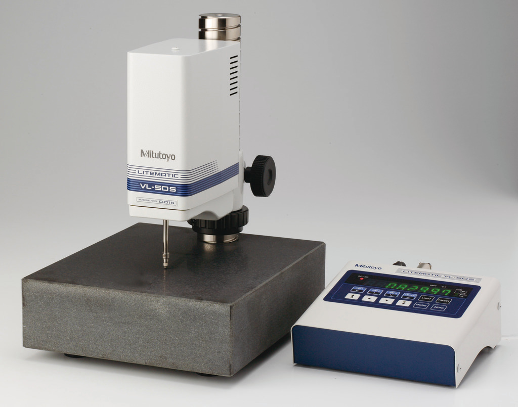 ●由測定力0.01N,適合量測容易變形的工件或 高精度零件。 ●透過使用Litematic的特性,0.15N、1N型能以 固定測定力進行量測,而0.01N型則可用於難 以穩定的工件。 ●心軸由馬達驅動上下移動,測砧接觸工件後 停止。之後也能以固定壓力測得最大值、最 小值、偏差值。 ●最小顯示量為0.01μm的高解析度,此外量測 範圍廣達50mm。 ●量測部與顯示部為一體成型的VL-50-B,以及 分離型的VL-50S-B共2種可供選擇。 ●VL-50-B的測定載物台使用陶瓷材質,不必擔 心生鏽,易於保養管理。 ●主軸部採用低膨脹材質,減少溫度造成的 變形。