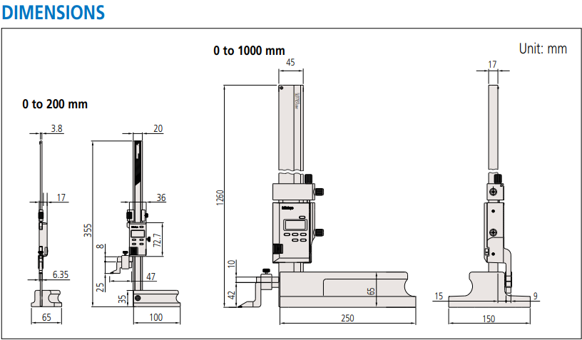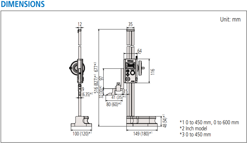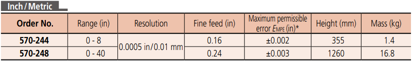 570-412 •三豐的新型標準高度計採用棱柱,剛性極佳 •滑塊移動手柄實現平滑的垂直移動 •U-WAVE-T/TC/TCB(無線數據傳輸單元)可以連接到顯示器的背面 • 單柱,數顯高度計帶大顯示屏和底部的入門型號以獲得良好的可操作性 • 用於移動滑塊的手柄使得平滑的垂直運動 • 高剛性支柱和大夾具槓桿提供平穩可靠作業性 570-244 • ABS 和 INC 測量模式允許高效運作 • 剛性結構使儀器適用用於惡劣的工作環境 • +/- 測量功能拓寬了測量範圍應用範圍 • 硬質合金頭劃線器作為標準配件 • 當千分錶或測試指示器處於與 570-227 和 244 一起使用 專用固定桿(953639,總長50毫米)推薦使用 然而,MPE(最大允許誤差)可能會更大因為測量點更遠從樑上